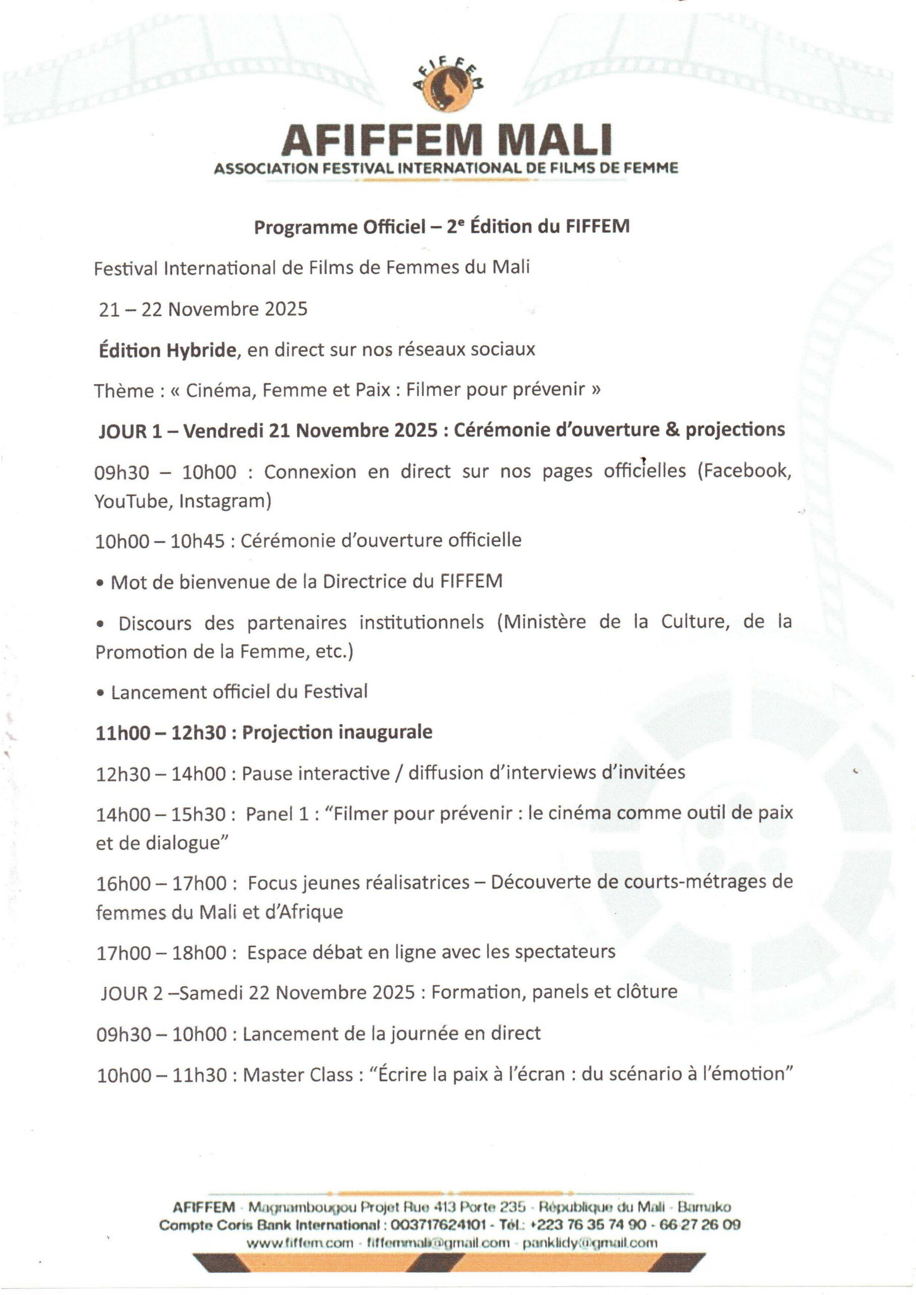 À travers les films réalisés par des femmes du Mali, d’Afrique et du monde entier, le festival célèbre la diversité des cultures, des histoires et des expériences vécues par les femmes.