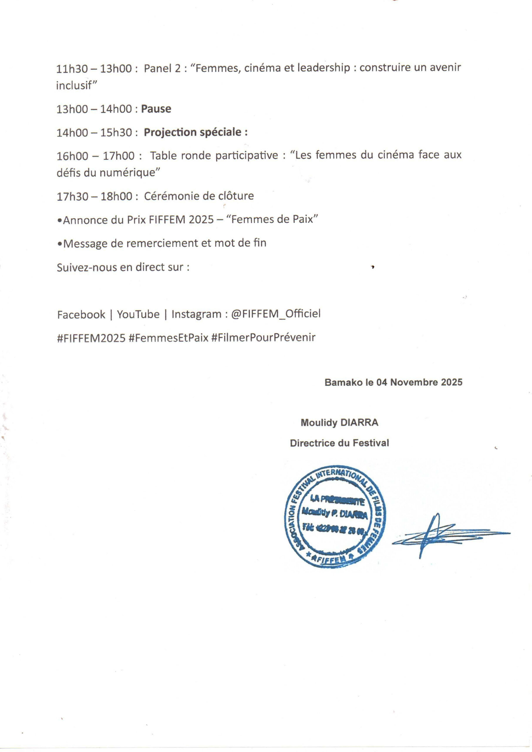 Je suis sincèrement honoré d’être nommé parrain du Festival International de Films de Femmes de Bamako (FIFFEM), un évènement qui célèbre l’excellence cinématographique et l’impact des femmes dans cette industrie.